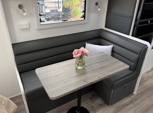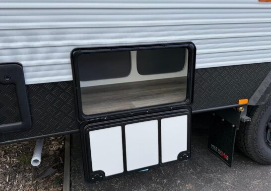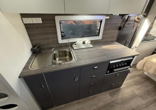 Hike Caravans are made in Victoria from a sturdy, flexible Australian timber called Meranti Timber. This allows for movement and flexes while you travel and is finished and sealed to the highest degree! This hardwood is popular because itโs relatively lightweight, strong and flexible, perfect for the Australian terrain. This van is spacious and cosy, but filled with specs that make any adventure, big or small, an ease.