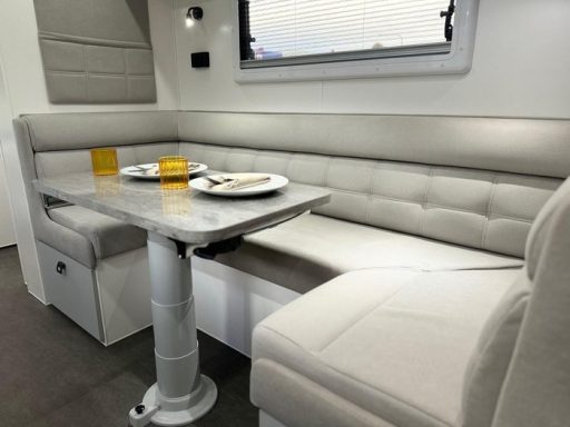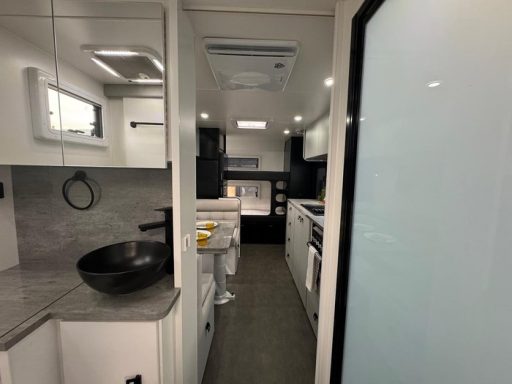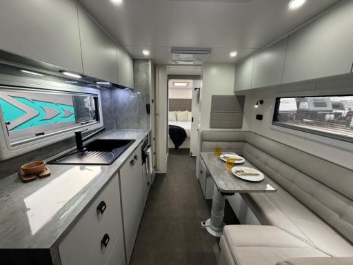 Showcasing the brand-new Grand Rover layout, this 23ft internal van comes with a rear door entry. Entering the van with the bunks on the right-hand side and into the kitchen & dining area a center ensuite allows the space to feel separate and private. Continuing through the ensuite leads you to the fully isolated bedroom area.