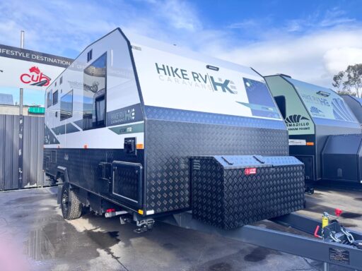 Hike Caravans are made in Victoria from a sturdy, flexible Australian timber called Meranti Timber. This allows for movement and flexes while you travel and is finished and sealed to the highest degree! This hardwood is popular because itโs relatively lightweight, strong and flexible, perfect for the Australian terrain. This van is small and compact, but filled with specs that make any adventure, big or small, an ease.